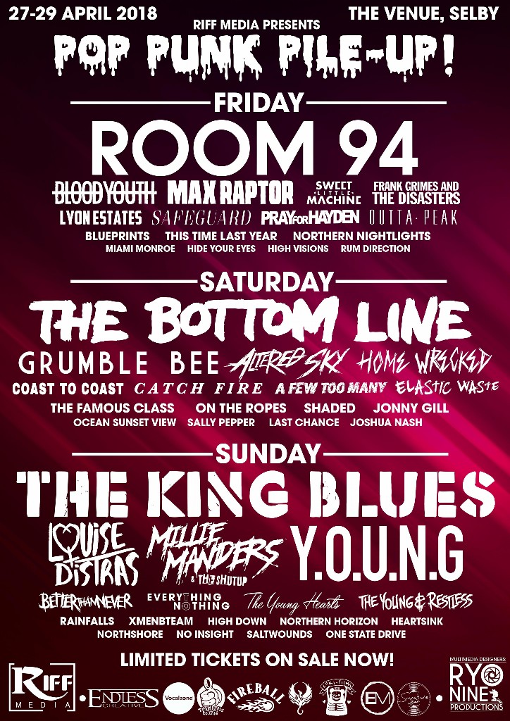 There’s a brand new festival on the scene this Spring Pop Punk Pile-Up Festival makes its debut in Selby, in North Yorkshire, between 27 to 29 April. But don’t let the name deceive you, there’ll be a wide range of genres on stage, from metal and alternative rock through to punk and, of course, pop-punk.