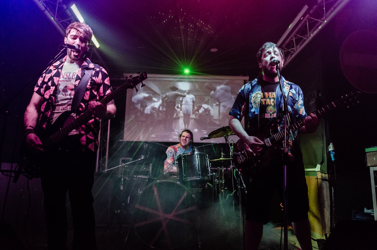 The Kent trio began as three mates who started jamming together, wrote some tunes, clicking through their love for “the same stupid things,” then fusing a “three-way collaboration of three idiots writing tunes about whatever the hell they feel like.”